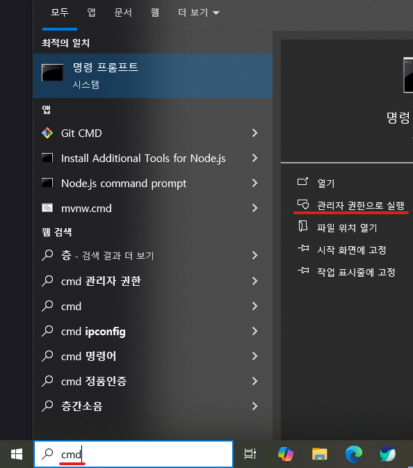 해결 방법: '관리자 권한'으로 실행해야 합니다.